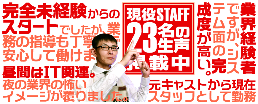 当然、グループの成長と比例して、スタッフの活躍の場も大きく広がっております。全9店舗の店長は全員レギュラースタッフからスタートし、現在に至っております。店長の下であるマネージャー職のスタッフも、やりがいを持って各店舗で大いに活躍しており、待遇面でもきっちり評価されています。創業25年のグループの最高峰に位置する難波秘密倶楽部での新しいスタートは、きっと貴方の人生にとって有意義なことになると確信しております!